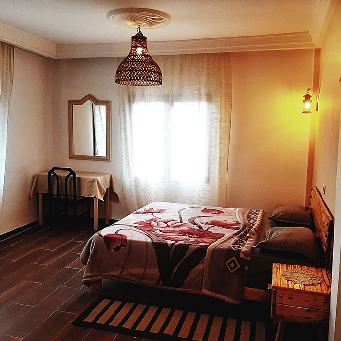 Un chalet confortable et calme en bordure de la nature sauvage d'Ain Draham pouvant accueillir 6 personnes. Le chalet se compose d'un séjour avec cheminée, de 2 chambres, d'une kitchenette avec mini-bar, d'une salle de bain et d'une terrasse. Des couvertures et des radiateurs sont disponibles.